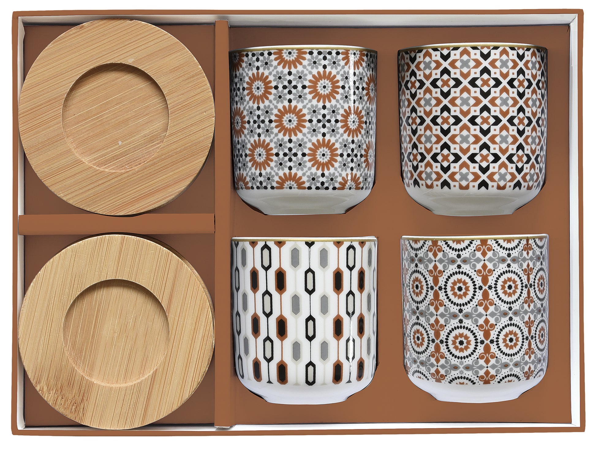 Set 4 bicchierini caffè 110 ml in porcellana con piattino in bambù in scatola regalo